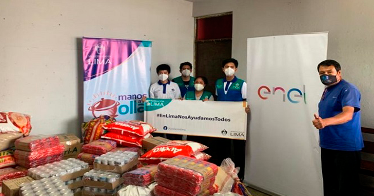 En el marco del programa “Adopta una Olla”, la Municipalidad Metropolitana de Lima entregó alimentos donados por los colaboradores de Enel Perú a 11 ollas comunes de los distritos de San Juan de Lurigancho (cinco ollas), Comas (una olla) y Carabayllo (cinco ollas). Esta es la segunda entrega de donativos que realiza la empresa al programa.