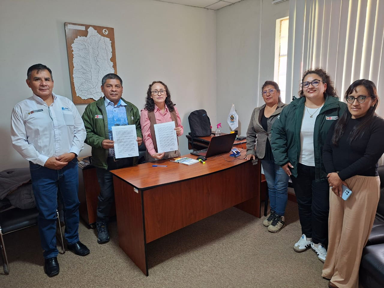 El encuentro se desarrolló en la sede de la Gerencia Regional de Recursos Naturales y Gestión Ambiental y contó con la presencia del equipo técnico de la Autoridad Administrativa del Agua Huarmey Chicama, liderado por el Ing. Juan Pablo Fernández, y de la gerenta regional de Recursos Naturales y Gestión Ambiental, Ing. Mirtha Cervantes, junto a funcionarios del Gobierno Regional.