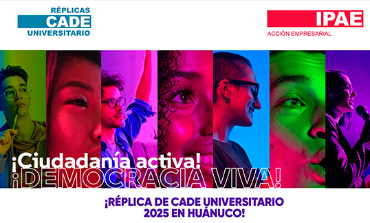 CADE Universitario de IPAE Acción Empresarial, el encuentro de jóvenes líderes más importante del país, activa su formato descentralizado a través de las Réplicas Regionales, y en esta ocasión llegará a la región Huánuco. El foro se llevará a cabo el martes 2 de diciembre, de 8:30 a.m. a 1:00 p.m. en el salón de usos múltiples Teatrín de la Universidad Nacional Hermilio Valdizán (UNHEVAL).