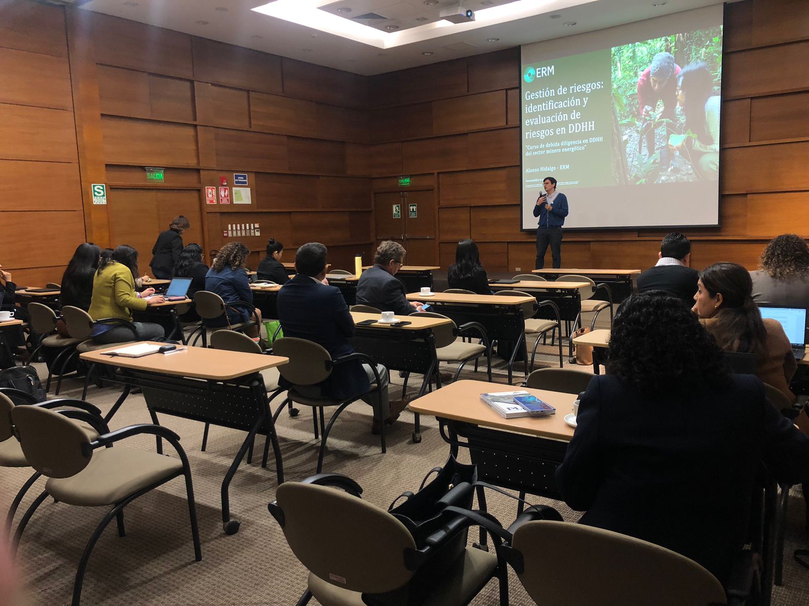 Posteriormente, se realizó un ejercicio práctico con los asistentes sobre la identificación de riesgos. Para ello, se abordaron cuatro aspectos: Sociales y relacionados a la comunidad; Ambientales y de salud; Condiciones de trabajo y diversidad; y Contratos y proveedores. El ejercicio buscó visibilizar la aplicación de los conceptos aprendidos en situaciones reales, al mismo tiempo que propició el intercambio de experiencias entre los asistentes.