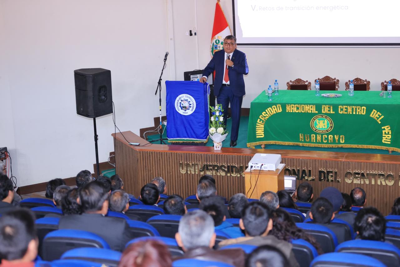 El ministro de Energía y Minas, Luis Bravo De la Cruz, destacó el amplio potencial eléctrico del país, así como los avances y desafíos del subsector energético nacional, durante una charla magistral que ofreció en la Universidad Nacional del Centro del Perú (UNCP), donde fue condecorado por su trayectoria y aporte al desarrollo del sector.