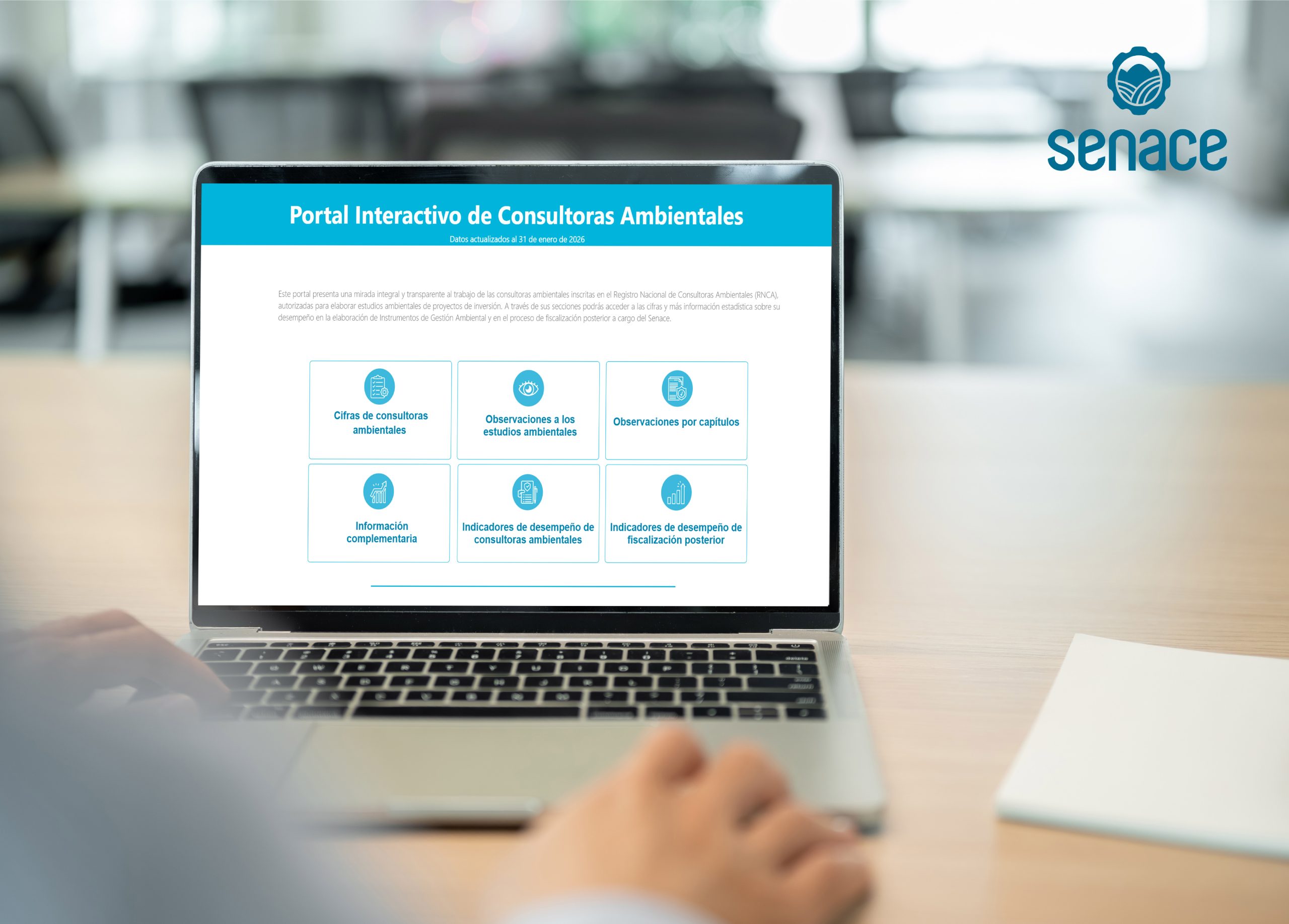 El Senace invita a la ciudadanía a ingresar al Portal Interactivo de Consultoras Ambientales, plataforma digital que presenta cifras e indicadores de las entidades encargadas de elaborar los estudios ambientales para su evaluación y que se encuentran inscritas en el Registro Nacional de Consultoras Ambientales (RNCA).