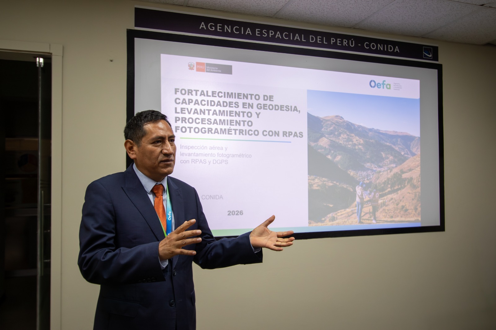 El Organismo de Evaluación y Fiscalización Ambiental (OEFA) inauguró el taller Fortalecimiento de capacidades en Geodesia, levantamiento y procesamiento Fotogramétrico con RPAS dirigido a profesionales de la Comisión Nacional de Investigación y Desarrollo Aeroespacial (CONIDA), que pertenece a la Agencia Espacial del Perú. El objetivo de esta capacitación es fortalecer las capacidades de los asistentes en el uso de herramientas geoespaciales aplicadas a la captura, procesamiento y análisis de información mediante Sistemas de Aeronaves Pilotadas Remotamente (RPAS) y Sistema Global de Navegación por Satélite (GNSS).